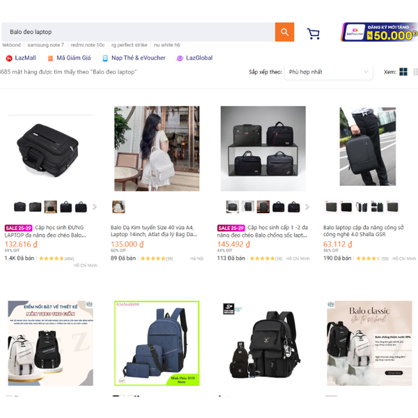 Mua balo laptop trên sàn Lazada