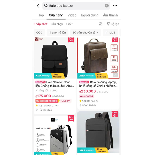 Mua balo đeo laptop trên sàn Tiktokshop