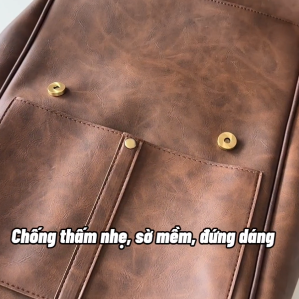 Chất liệu da tổng hợp cao cấp có độ đàn hồi cao, cho phép balo chịu được va đập mà không mất phom dáng hay bị nhăn do chèn ép mạnh trong quá trình di chuyển.