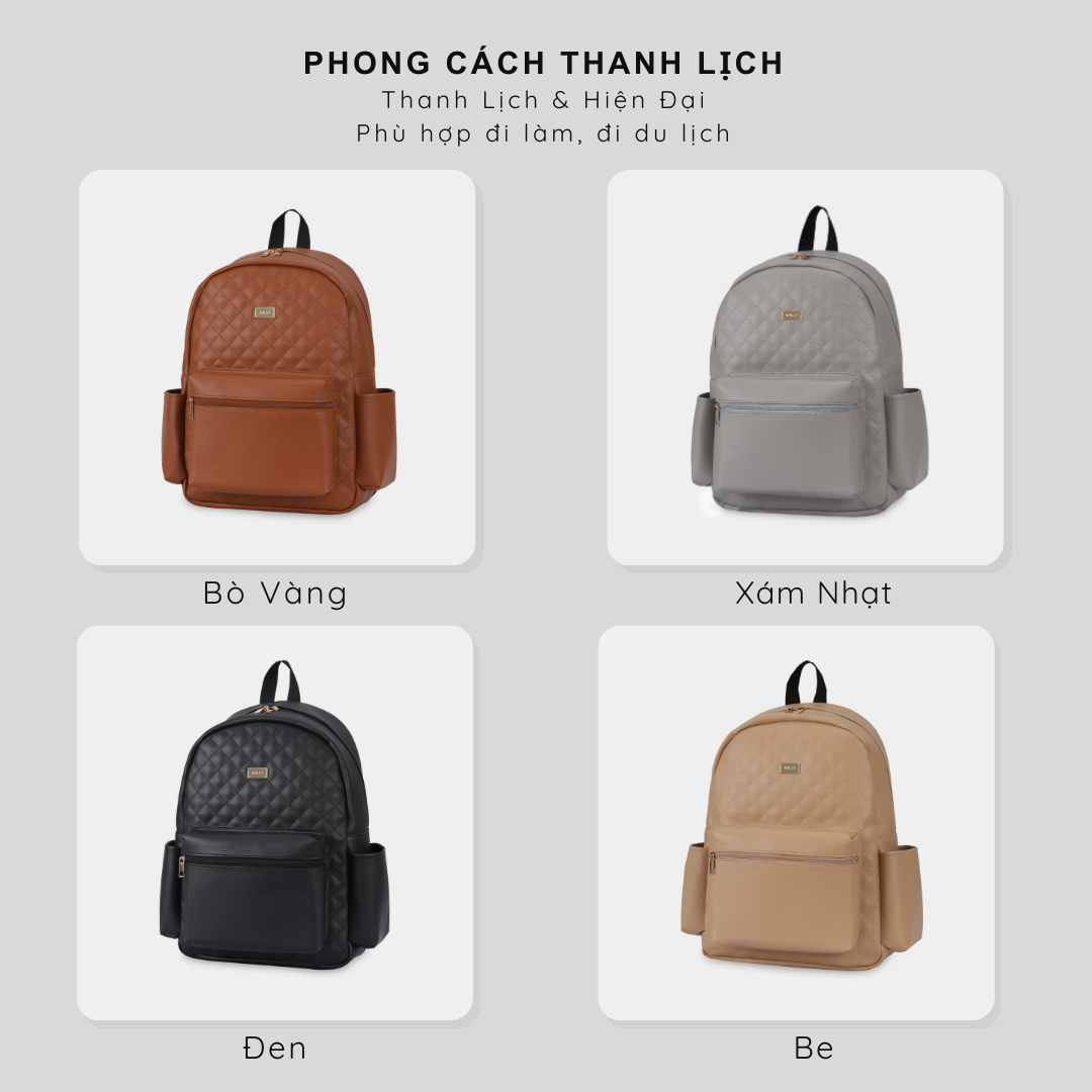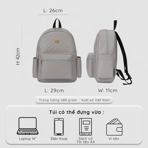 Balo da nữ họa tiết chần trám thanh lịch đựng laptop 14 inch này thích hợp cho cho các bạn mang đi làm, đi du lịch, đi học, đi chơi hay dạo phố cùng bạn bè...