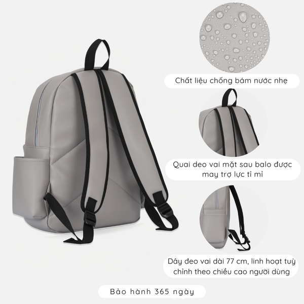 - Balo được làm từ da tổng hợp cao cấp, mô phỏng bề mặt da thật, có độ mềm mại và đàn hồi tốt.