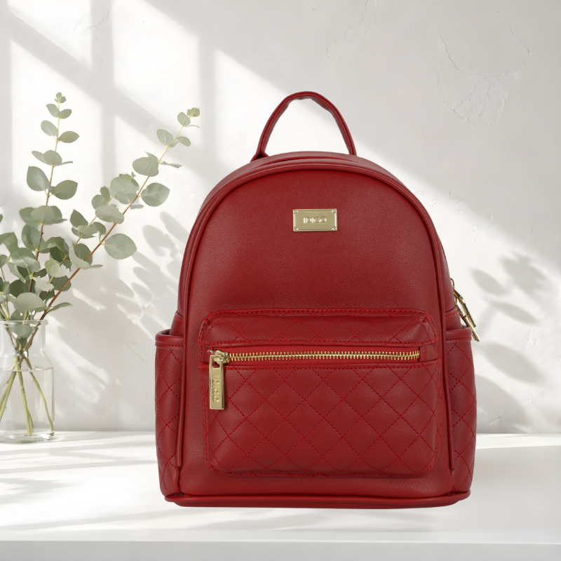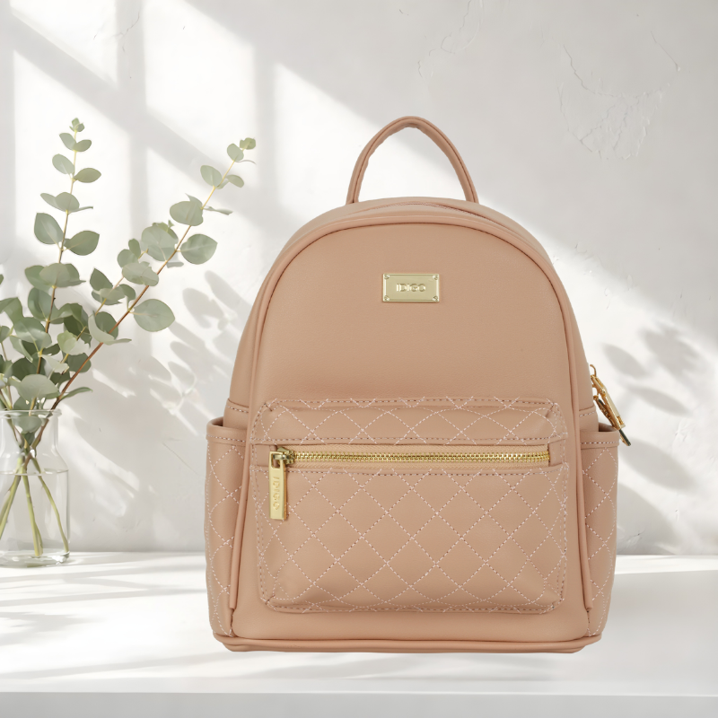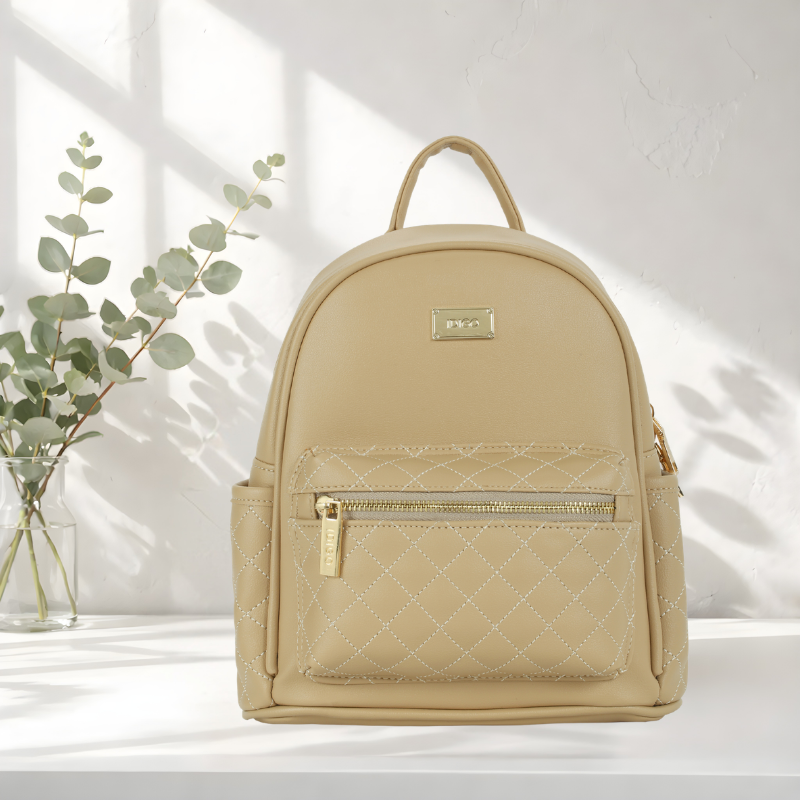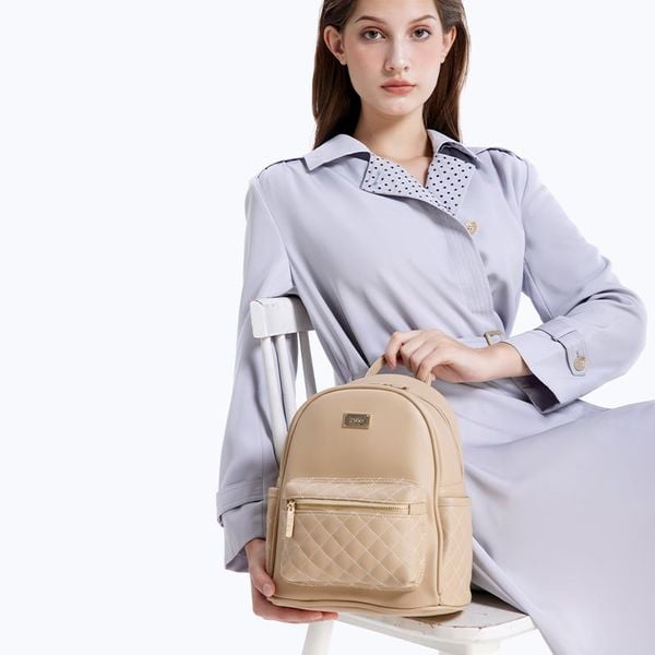 - Ngăn túi mặt trước được may chần trám nổi bật, tạo điểm nhấn nữ tính cho chiếc balo.