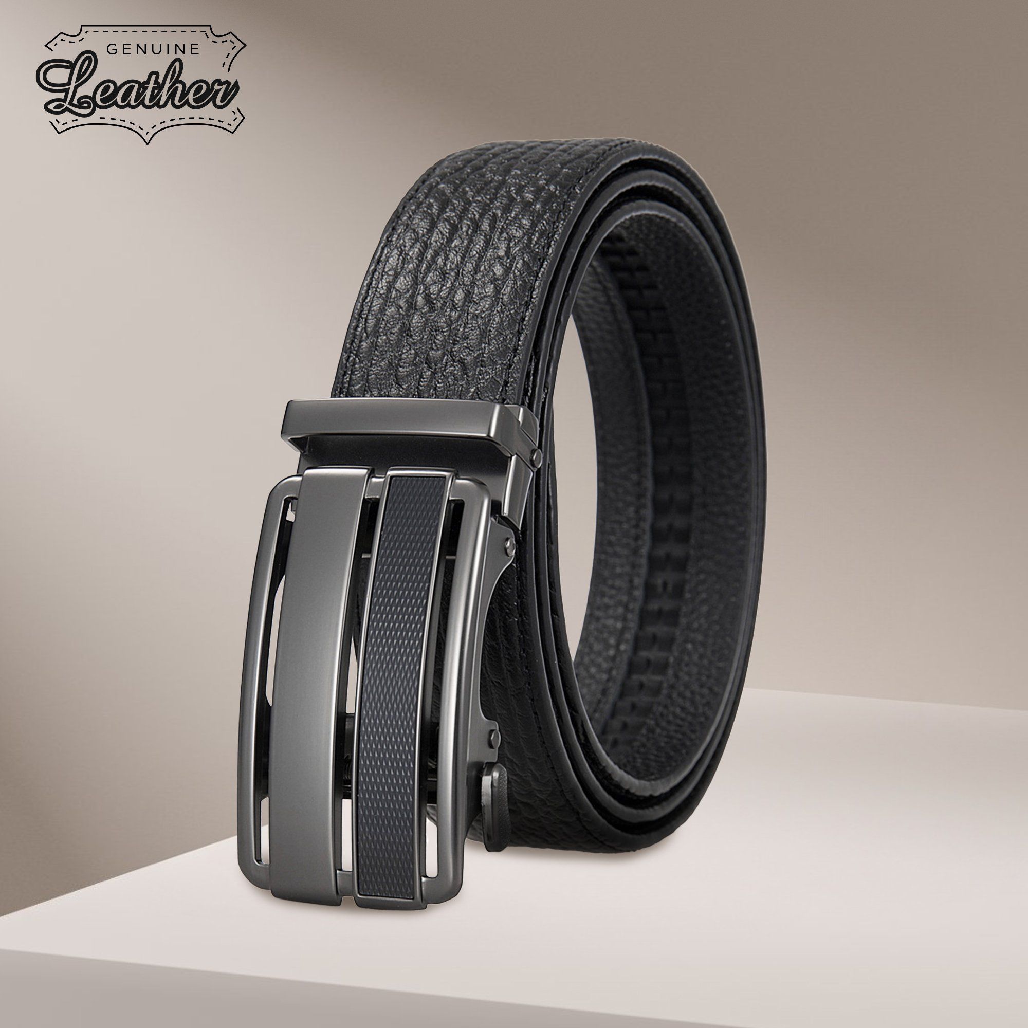 Chất liệu da bò sần mềm mại, bền bỉ toát lên vẻ đẹp nam tính, lịch lãm, sang trọng.