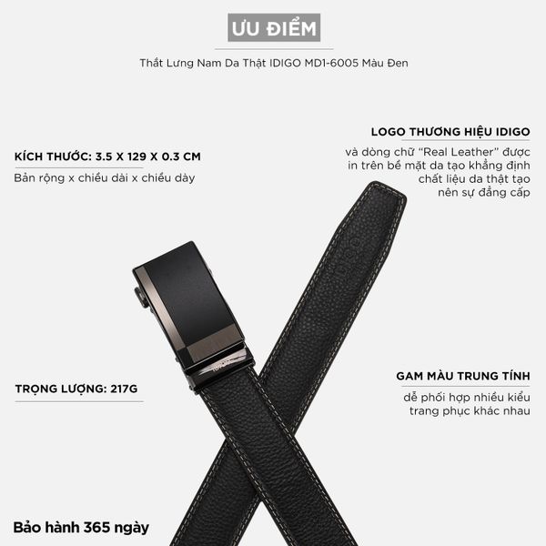 Thắt Lưng Nam Da Thật IDIGO MD1 - 6005 Màu Đen