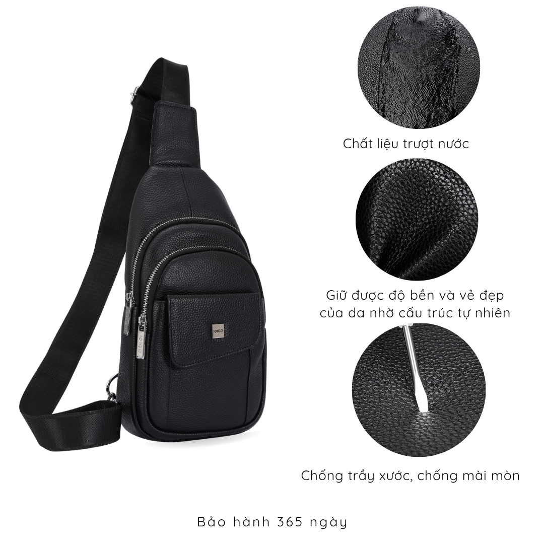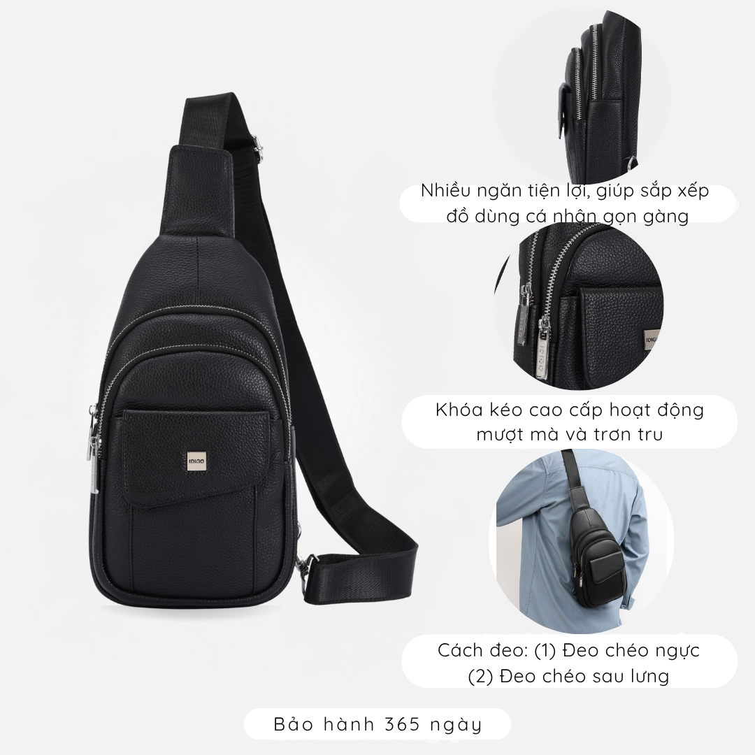 Túi đeo chéo nam, túi đeo trước ngực da thật cao cấp IDIGO MB1 - 7011