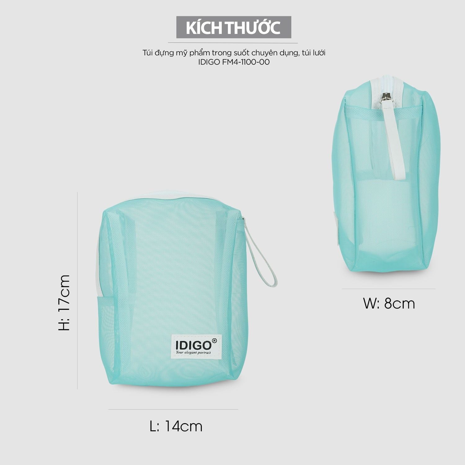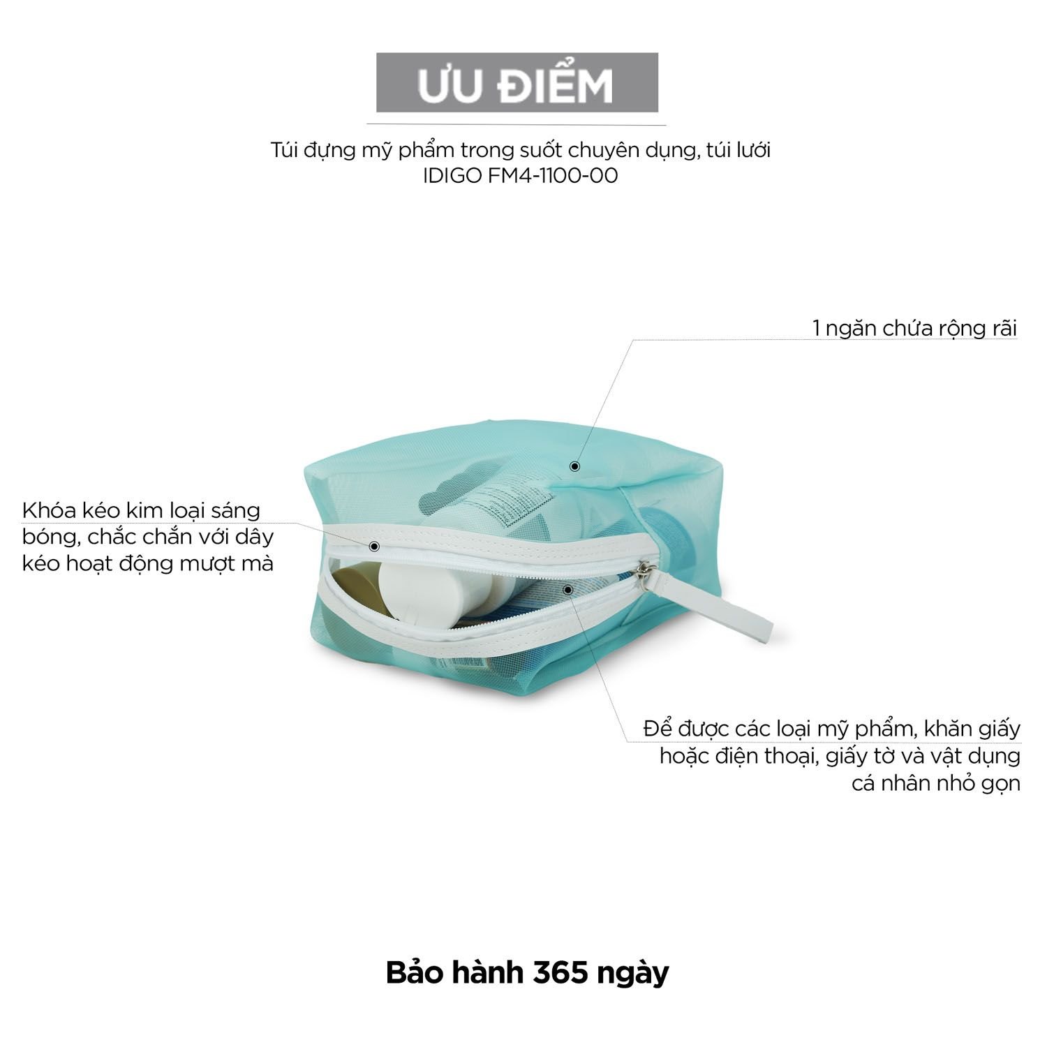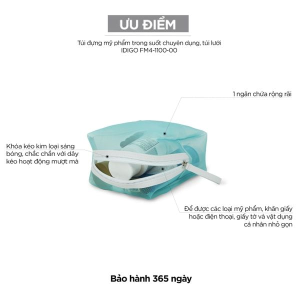 Túi đựng mỹ phẩm trong suốt chuyên dụng, túi lưới đựng đồ vệ sinh cá nhân mang theo du lịch, đi tập gym IDIGO FM4 - 1100